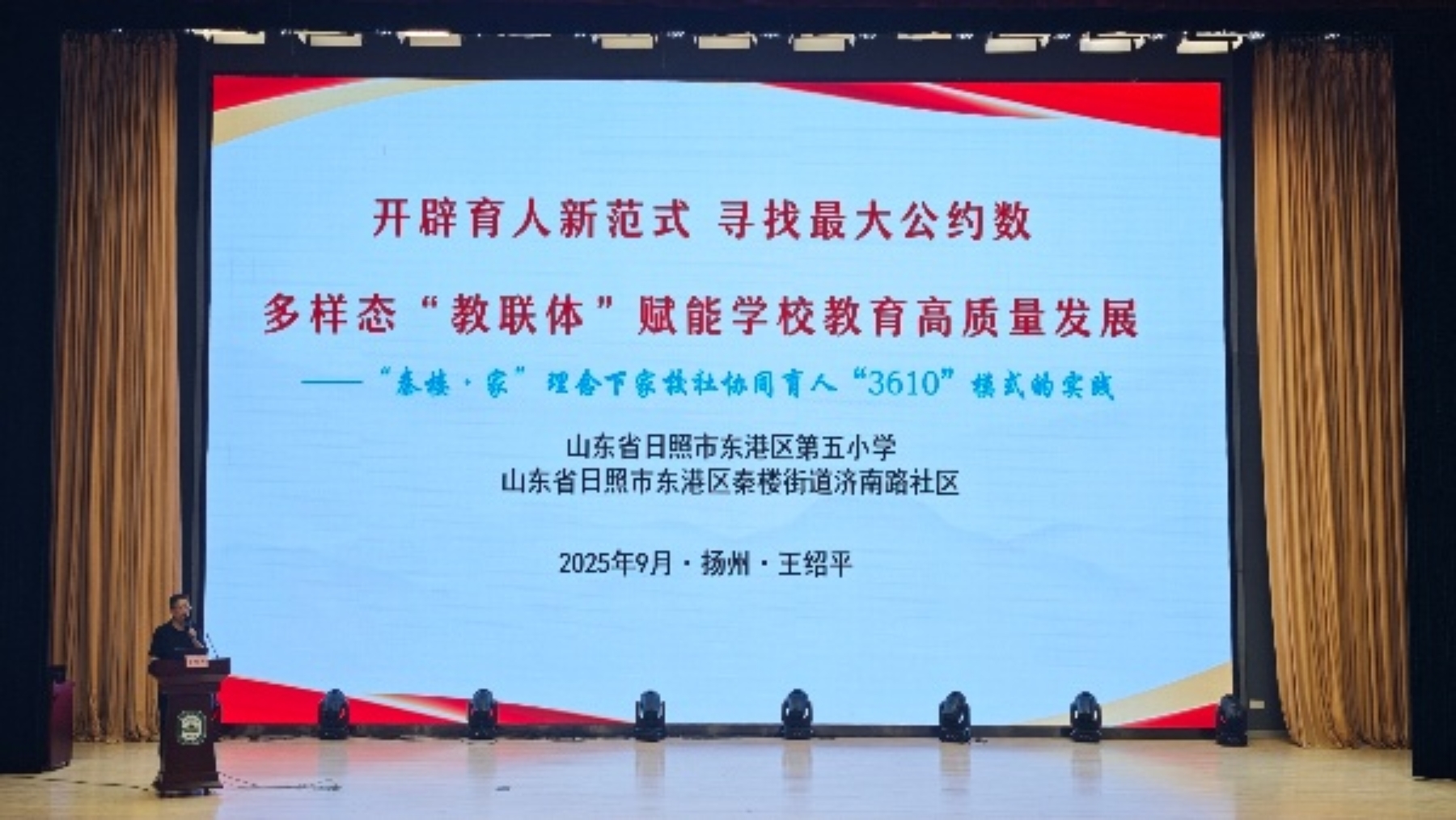 日前,中国教育学会学校家庭社会协同育人专业委员会2025学术年会在江苏省扬州市举行,日照市东港区第五小学作为全国11个小学校家社协同育人模式创新的单位代表,进行了以《开辟育人新范式,寻找最大公约数,多样态“教联体”赋能学校教育高质量发展》为主题的经验交流,受到与会领导和专家学者的高度赞誉。