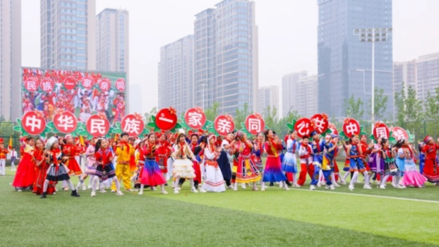 在民族团结进步宣传月期间,学校连线新疆乌鲁木齐市第七十八中学、青海果洛州班玛县藏文学校,组织不同民族的少先队员开展“石榴籽一家亲”云端主题活动,让铸牢中华民族共同体意识在互动中深入人心。在“三月三”,该校学生与广西大化瑶族自治县六也乡中心小学的壮族学生共庆佳节;端午节,学生和云南景颇族、傣族、阿昌族同学一起包粽子、做香囊;植树节,与广西壮族同学共同种下“同心石榴树”。经过多年的扎实实践,学校获得“山东省民族团结进步示范岗”荣誉称号。