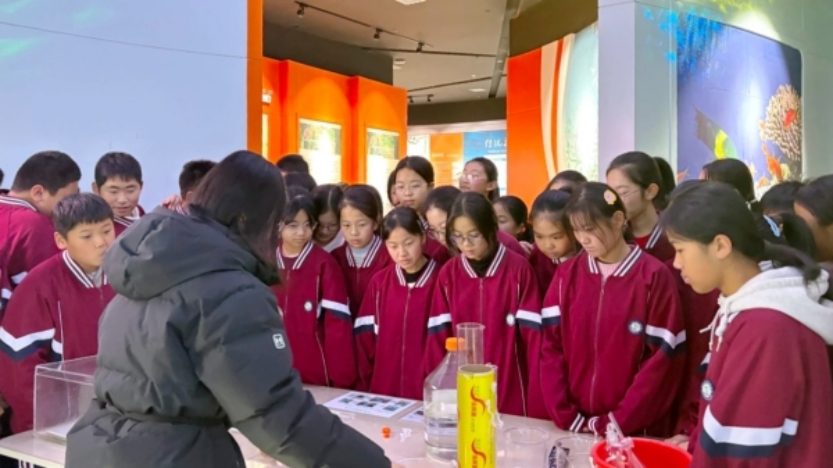 而最让大家兴奋的是互动实验环节了。在工作人员的指导下,大家围在实验桌前观察、操作,近距离感受海藻提取物的特性,脸上满是好奇与专注。