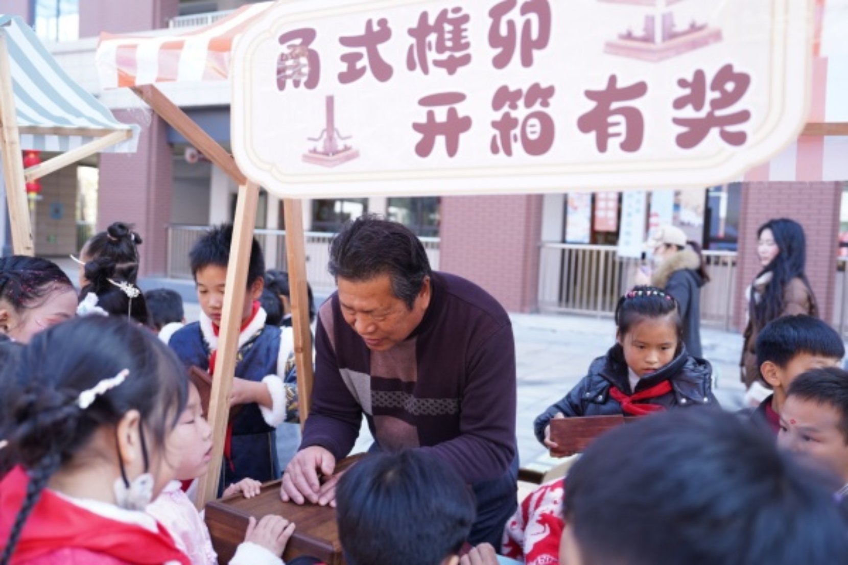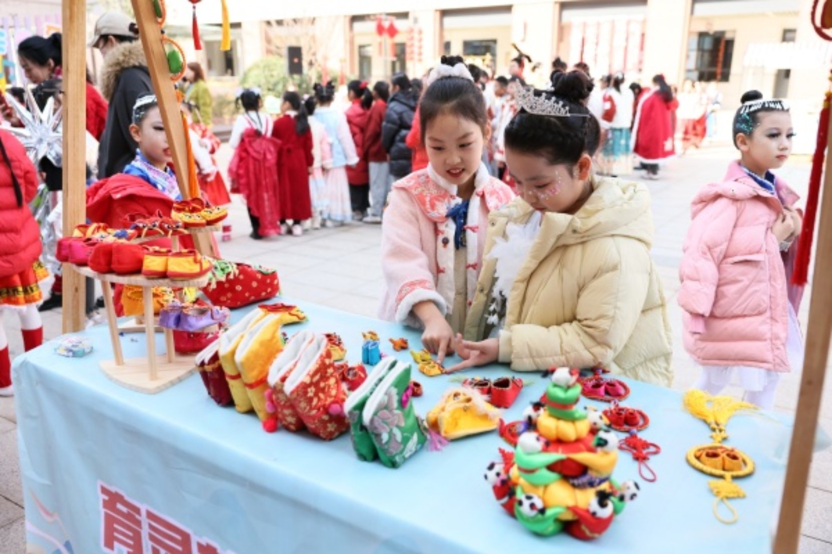 面塑巧手拈来,虎头鞋千针万线,木构件严丝合缝……12月16日,镇海区蛟川实验小学的校园变身一座生动的非遗传承馆。甬式榫卯、大漆、酥花等古老技艺,与包饺子、非遗拓印等班级工坊同步展开,一场以“秋收冬藏·书韵飘香”为主题的冬至文化体验活动,让孩子们在热气腾腾的实践与精致典雅的手作中,触摸传统文化脉搏。