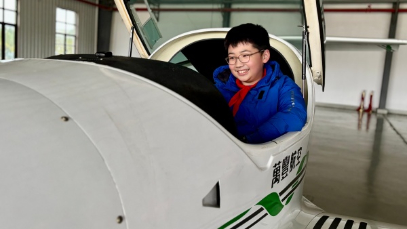 在飞机机库,同学们近距离接触各类通航飞机,最让大家兴奋的是体验小型双人座飞机的驾驶位。同学们有序坐上驾驶位,触摸操作杆、观察仪表盘,在镜头前留下属于自己的“小小飞行员”的难忘瞬间。直观的体验让大家对飞机驾驶和飞机构造有了更真切地认识,探索蓝天的热情也被彻底点燃。在飞行服务站,专业工作人员还为同学们讲解了相应的数据知识,详细介绍了航空飞行的各类保障环节,让大家明白看似简单的飞行背后有着严谨且完善的安全体系,也培养了同学们科学严谨的探索态度。