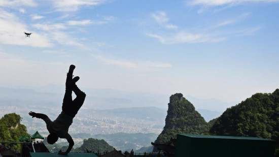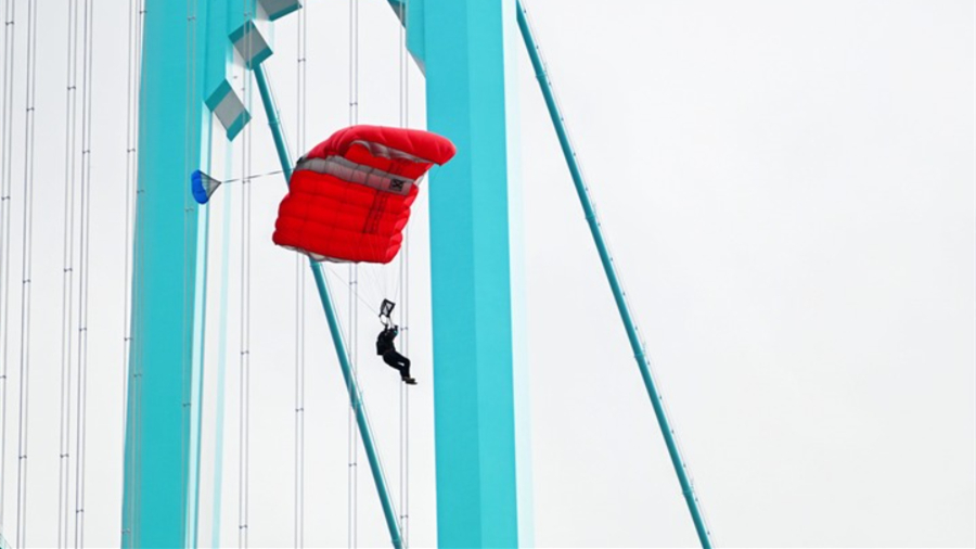 跳伞运动员世界第一高桥上演“空中芭蕾”