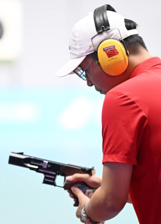 10月14日,山东队选手李越宏在男子25米手枪速射团体决赛中。新华社记者 邓华 摄