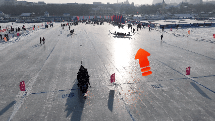 在松花江冰面上你追我赶、“乘风破浪”
