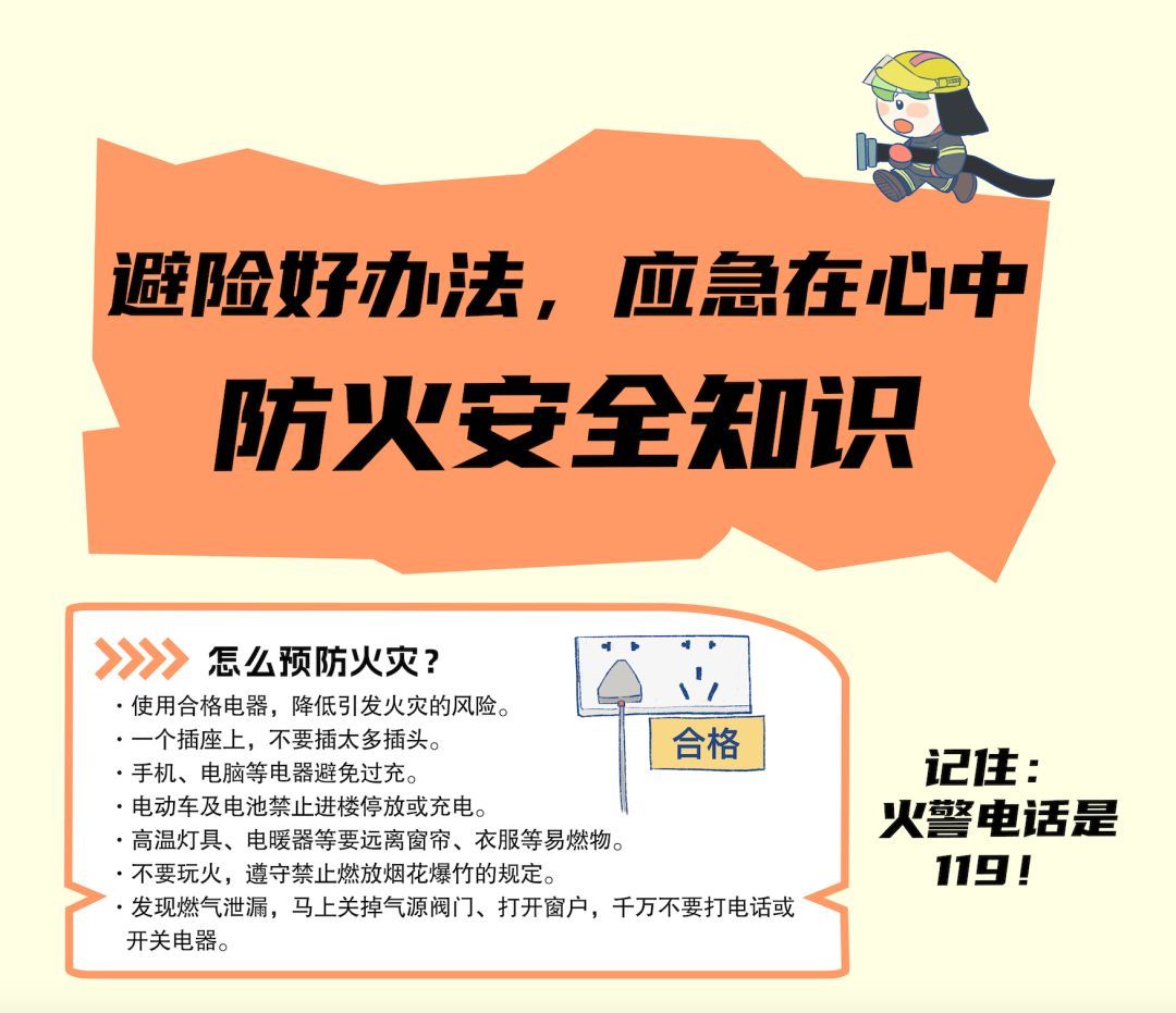 社区里的消防通道、灭火器位置也要关注哦。让我们一起把危险都赶跑!