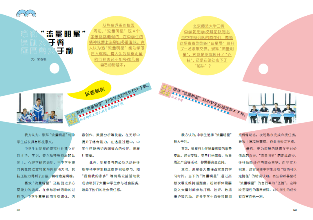 观点:崇拜“流量明星”对中学生的成长弊大于利。