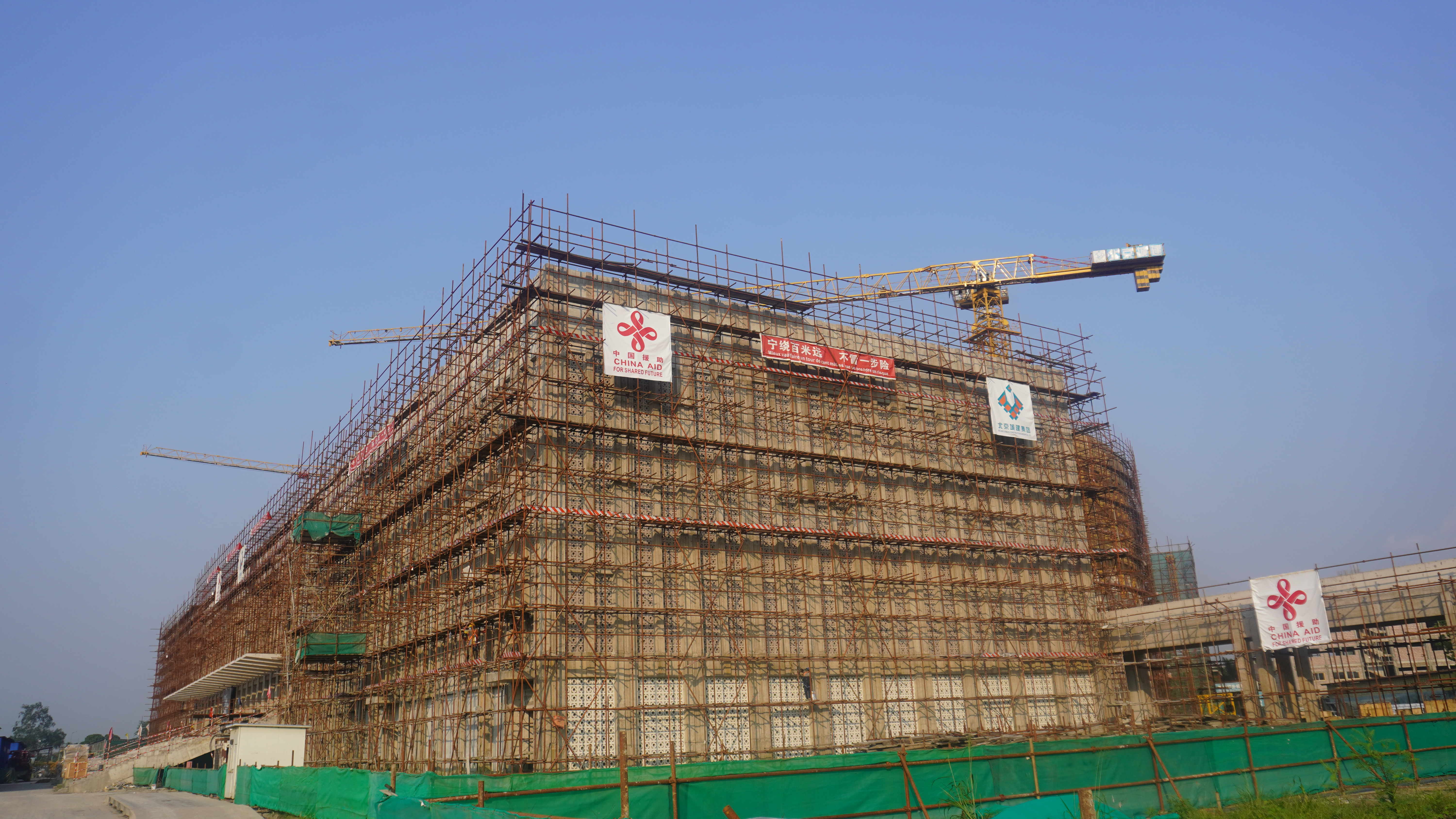 这是2023年5月23日在刚果(金)首都金沙萨拍摄的由中国援建的中部非洲文化艺术中心项目施工现场。