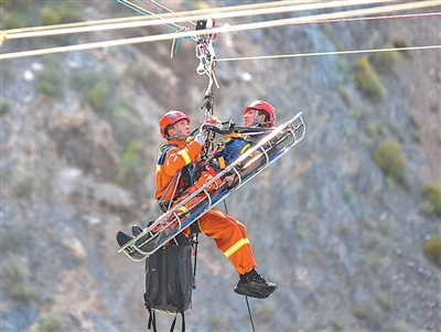 建设更高水平的平安中国 甘肃森林消防总队张掖支队组织开展高空绳索救援实战化训练。 景旭鹏摄(影像中国)