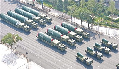 加强国防和军队现代化 纪念中国人民抗日战争暨世界反法西斯战争胜利80周年大会上,核导弹第二方队接受检阅。 新华社记者 胥冰洁摄