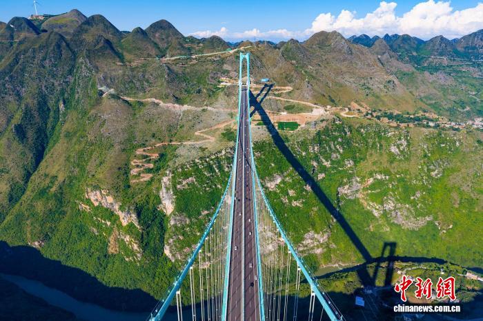 该桥主桥跨径居山区桥梁跨径世界第一、桥梁高度居世界第一。众多游客慕名前来,或踏上透明玻璃步道体验“云端漫步”,或在大桥观景平台、周边村寨寻找最佳角度,与这座“横竖都是世界第一”的大桥合影留念。