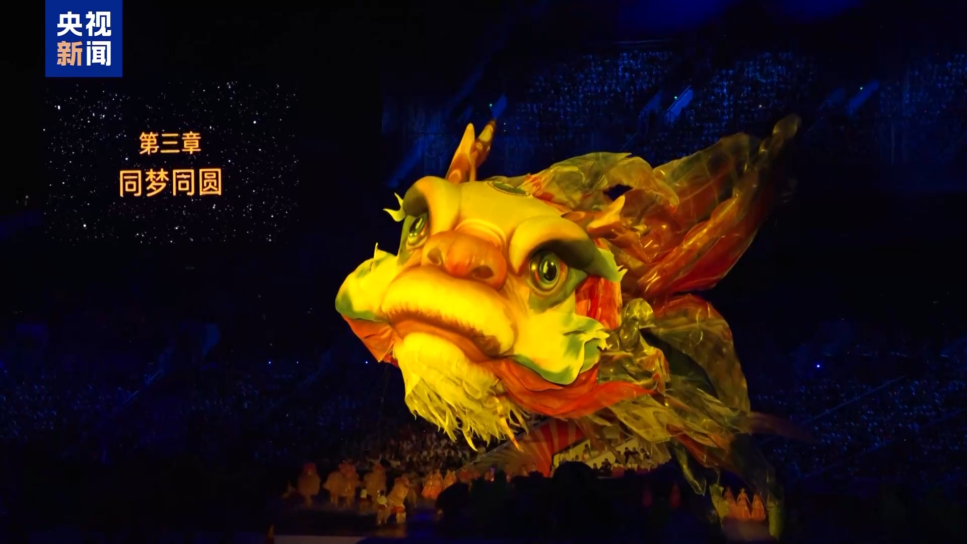 十五运会开幕式美术总设计 巨型鳌鱼原创设计者 尚天宝:这只鳌鱼的造型和传统意义上的鳌鱼有些许不同,保留了龙头鱼身,但是尾巴部分我们做了特殊的处理,把这种凤尾鲤鱼的大尾巴嫁接了进来,鱼鳍、鱼身参考了金龙鱼的鱼身,让它更好看,色彩上更岭南,发挥了岭南的浓郁用色的极致。