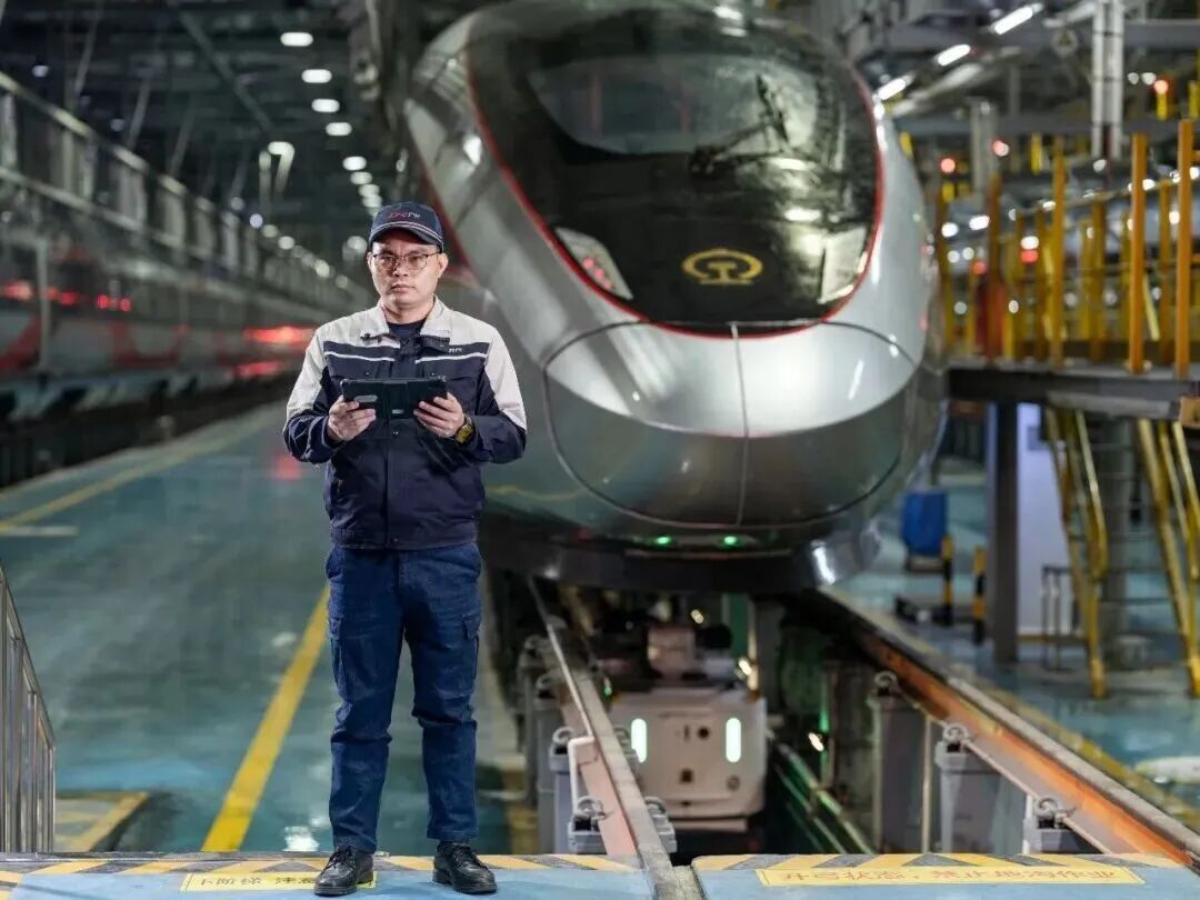 广州南动车运用所的劳动者,以饱满的工作热情和精湛的技艺护航高铁安全运行。