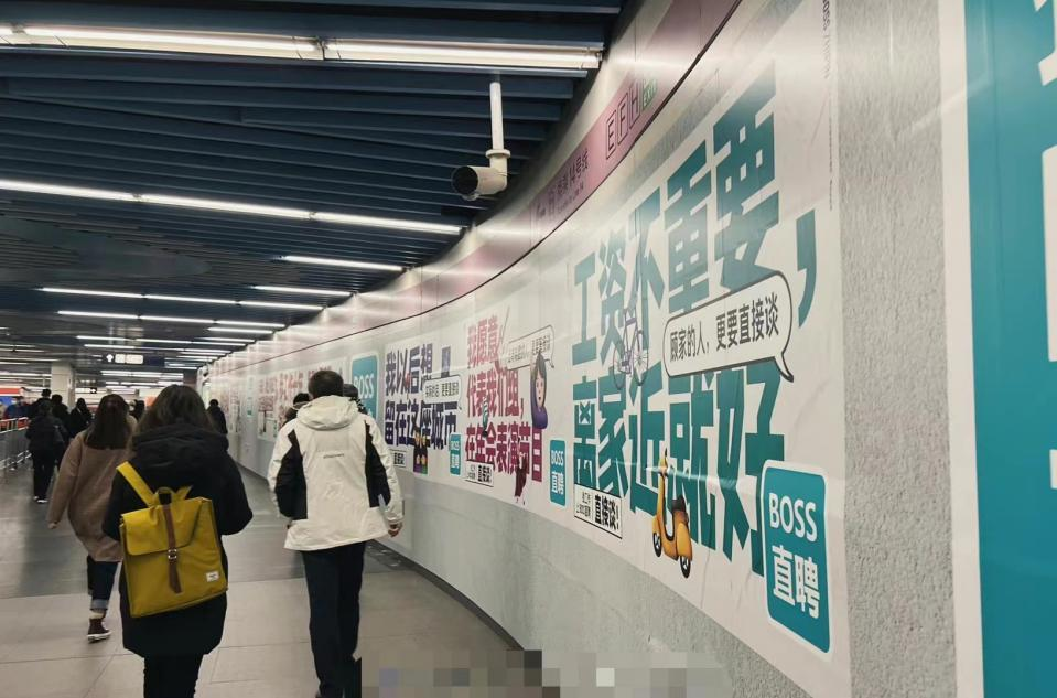 “下班进地铁左边墙上贴满了前程无忧,右边都是猎聘,出站上来是BOSS直聘和智联招聘……”在95后青年吴伟(化名)看来,地铁站内招聘网站的“轮番轰炸”给打工人带来的是略为紧张的压迫感。