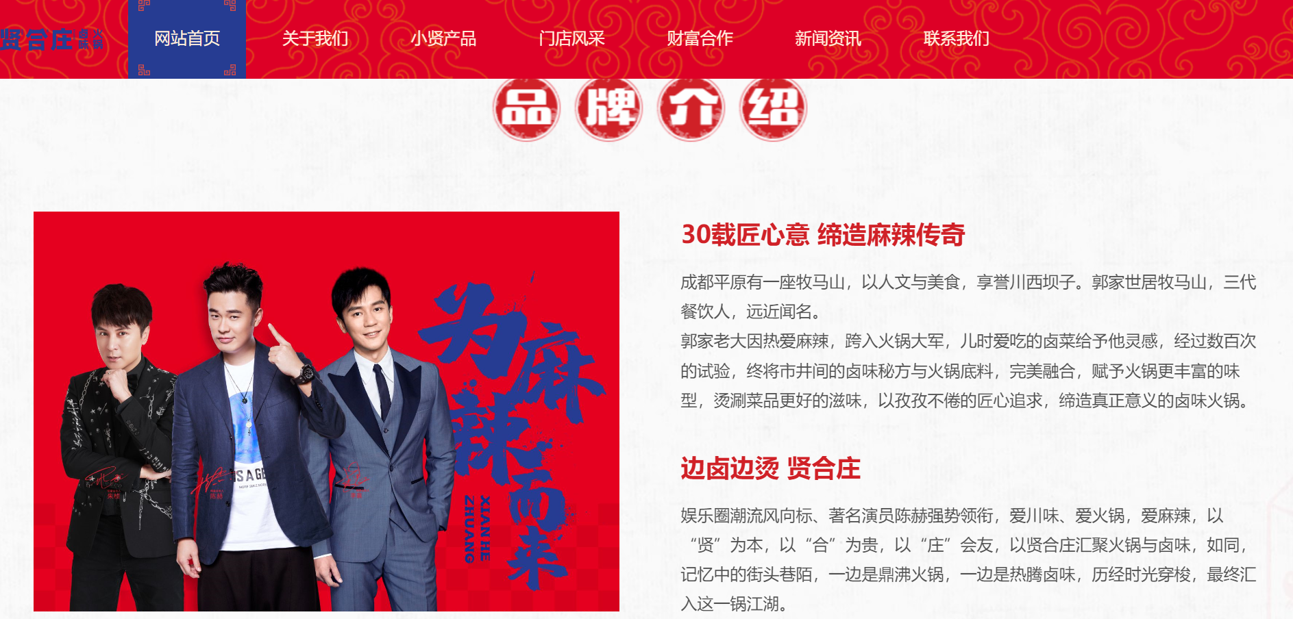 未来网北京6月10日电(记者 谢青)“陈赫力扛贤合庄卤味火锅大旗”,时至今日,在以火锅为主打的餐饮品牌“贤合庄”官网上,明星陈赫的宣传页面依旧占据大篇幅。