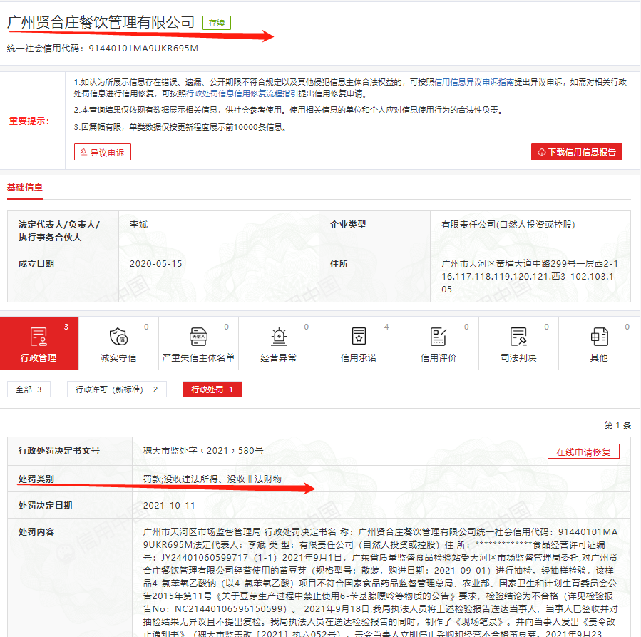 值得注意的是,贤合庄品牌旗下的多家火锅店,也因食品安全问题而受处罚。如2021年9月,广州贤合庄餐饮管理有限公司使用了不符合食品安全标准的黄豆芽,被广州市天河区市场监督管理局处以罚款1万元;2021年7月,湖南省常德市武陵区贤合庄卤味火锅店,因使用不符合食品安全标准的食品原料,被处以罚款5千元。