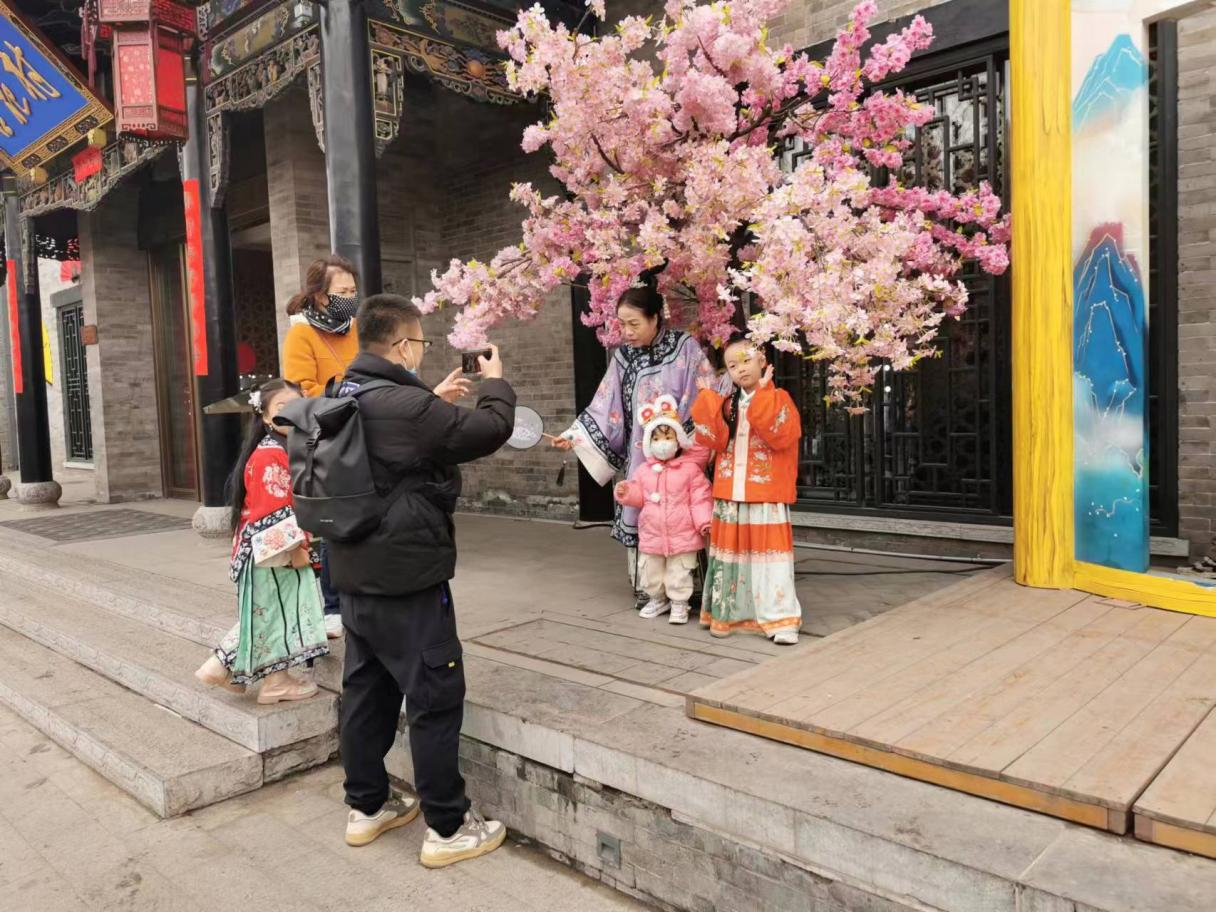 在平遥古城,来自山东的游客小雪专程来体验汉服之旅。在研究了互联网上的打卡攻略后,小雪就穿好自己精挑细选的汉服走上了街头。她向未来网“新春走基层报道组”介绍说,“因为在家里因碍于情面,之前购买的服装一直没有敢穿出去,但这次(旅行)之后,我回去也要继续穿。”