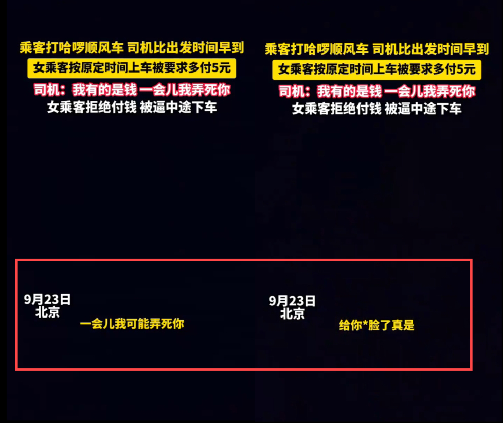 未来网北京10月12日电(记者 王军伟)近期,据媒体报道,一女性乘客投诉遭哈啰顺风车男司机恐吓、辱骂的事件引发网络热议,乘客发布录音中一男子大声辱骂“……一会儿我可能弄死你……给你逼脸真是……”更是引起轩然大波,网约车乘客人身安全、司乘之间纠纷等问题再次引起社会关注。