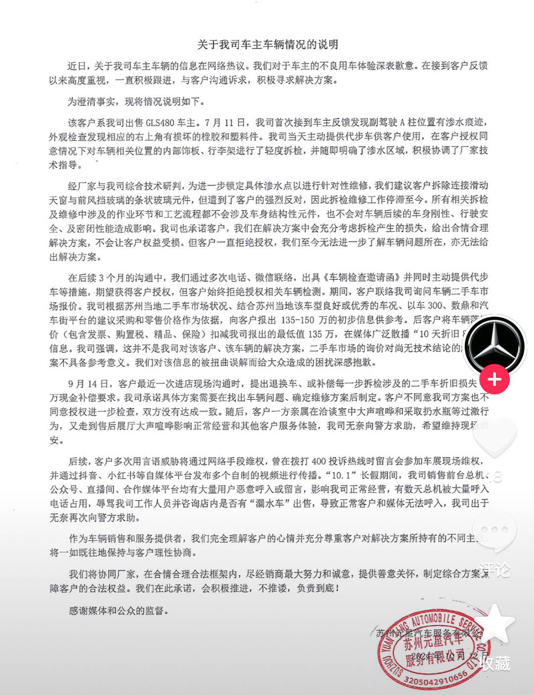 “雨棚迈巴赫”维权事件引发热议后,奔驰官方在10月11日的回应中表示,将以最大的诚意,在事实基础之上,协同经销商推进寻求合情合理合法的解决方案,确保每位客户的合法权益得到公平对待。
