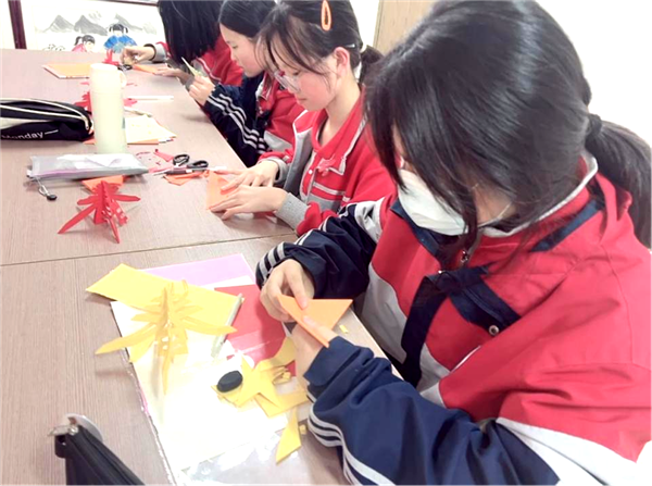 在活动现场,七年级学生朱恩冉认真地按照步骤进行创作,用满满的细心和认真开展“春”的主题作品创作。朱恩冉表示,她希望通过这件作品展示剪纸艺术的独特魅力,让同学们更加珍惜春天的时光。