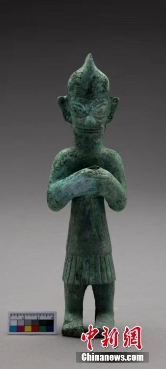 三星堆出土青铜扭头跪坐人像。四川省文物考古研究院供图