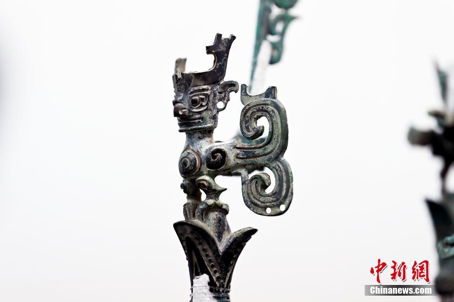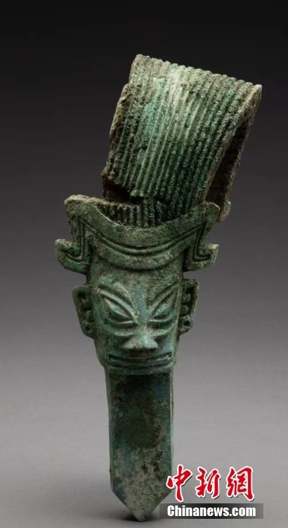 3号青铜神树的顶部头像。中新社记者 安源 摄