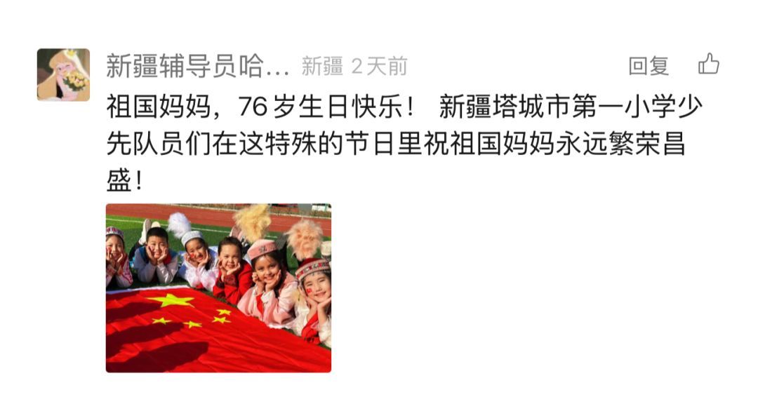 ▼新疆维吾尔自治区塔城市第一小学全体队员:我们在这特殊的节日里祝祖国妈妈永远繁荣昌盛!