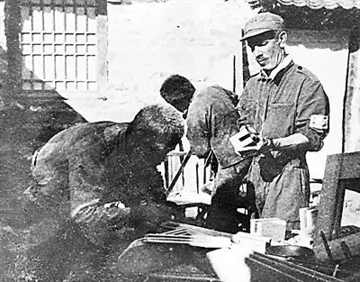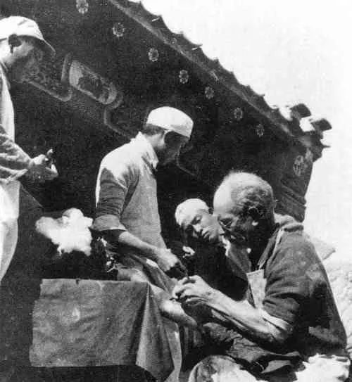 1939年10月,八路军在河北涞源县孙家庄附近进行战斗,白求恩的医疗站设在离火线很近的小庙里,炮声隆隆,气氛十分紧张,穿着草鞋的白求恩大夫依旧沉着地为伤员进行手术。