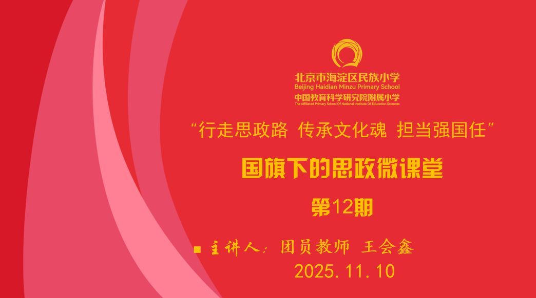 2025年11月10日,民族小学北校区思政微课堂第12期如期开讲。面对一、二年级学生,团员教师代表王会鑫老师带来了以“细微处见精神 劳动中塑品格”为主题的思政分享。