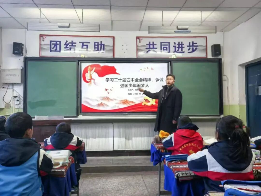 为深入学习贯彻党的二十届四中全会精神,引导少先队员厚植家国情怀、树立远大理想,近日,西藏自治区加庆孜完全小学组织各中队开展“学习党的二十届四中全会精神,争做强国少年追梦人”主题队会活动,让党的二十届四中全会精神在少年心中落地生根。