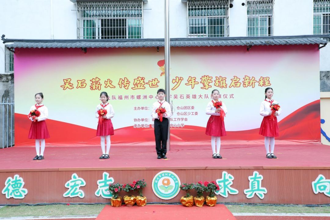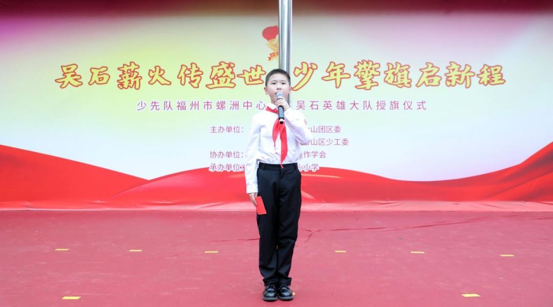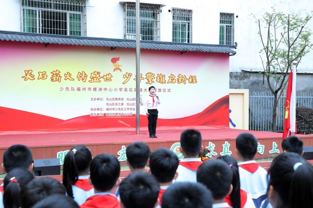 为深度融合思政“小课堂”与社会“大课堂”,引导少先队员厚植“忠诚、勇敢、智慧、奉献”的精神内核,深化爱国主义与革命传统教育,传承红色基因,3月27日上午,由仓山区教育局、仓山团区委、仓山区关工委、仓山区少工委主办, 福州市少先队工作学会 协办的少先队福州市螺洲中心小学“吴石英雄大队”授旗仪式在螺洲中心小学举行。