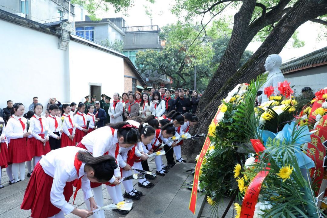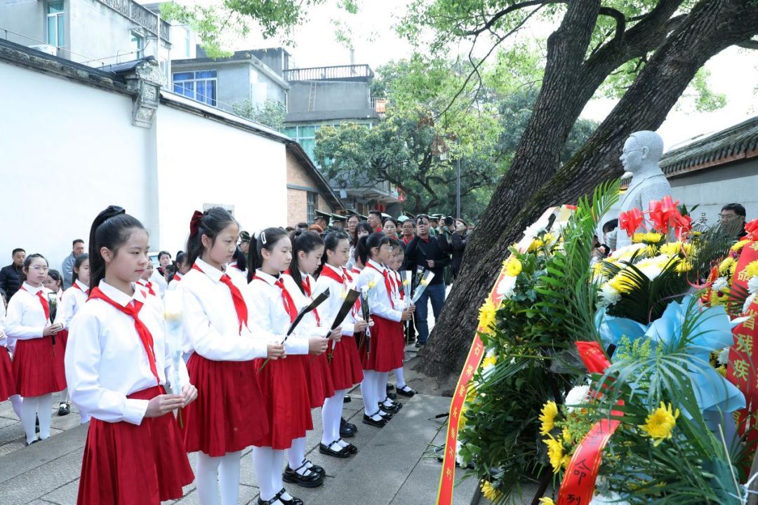 领导嘉宾与少先队员代表向吴石将军雕塑敬献鲜花,表达对革命先烈的深切缅怀与崇高敬意。朵朵鲜花寄哀思,缕缕深情敬英雄,以少年之心告慰先烈忠魂。