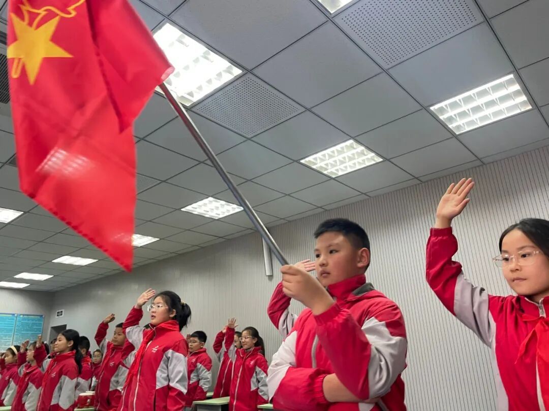 队会在庄严的出旗仪式中拉开帷幕。队员们高唱队歌,铿锵誓言展现新时代少先队员的精神风貌。