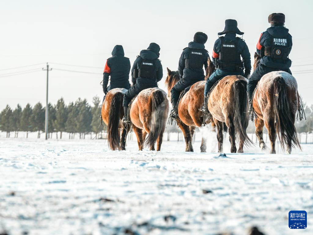 呵气成冰的清晨,寒风掠过内蒙古呼伦贝尔市陈巴尔虎旗的雪原,天地苍茫间,“海东青”骑警队开始了一天的工作。