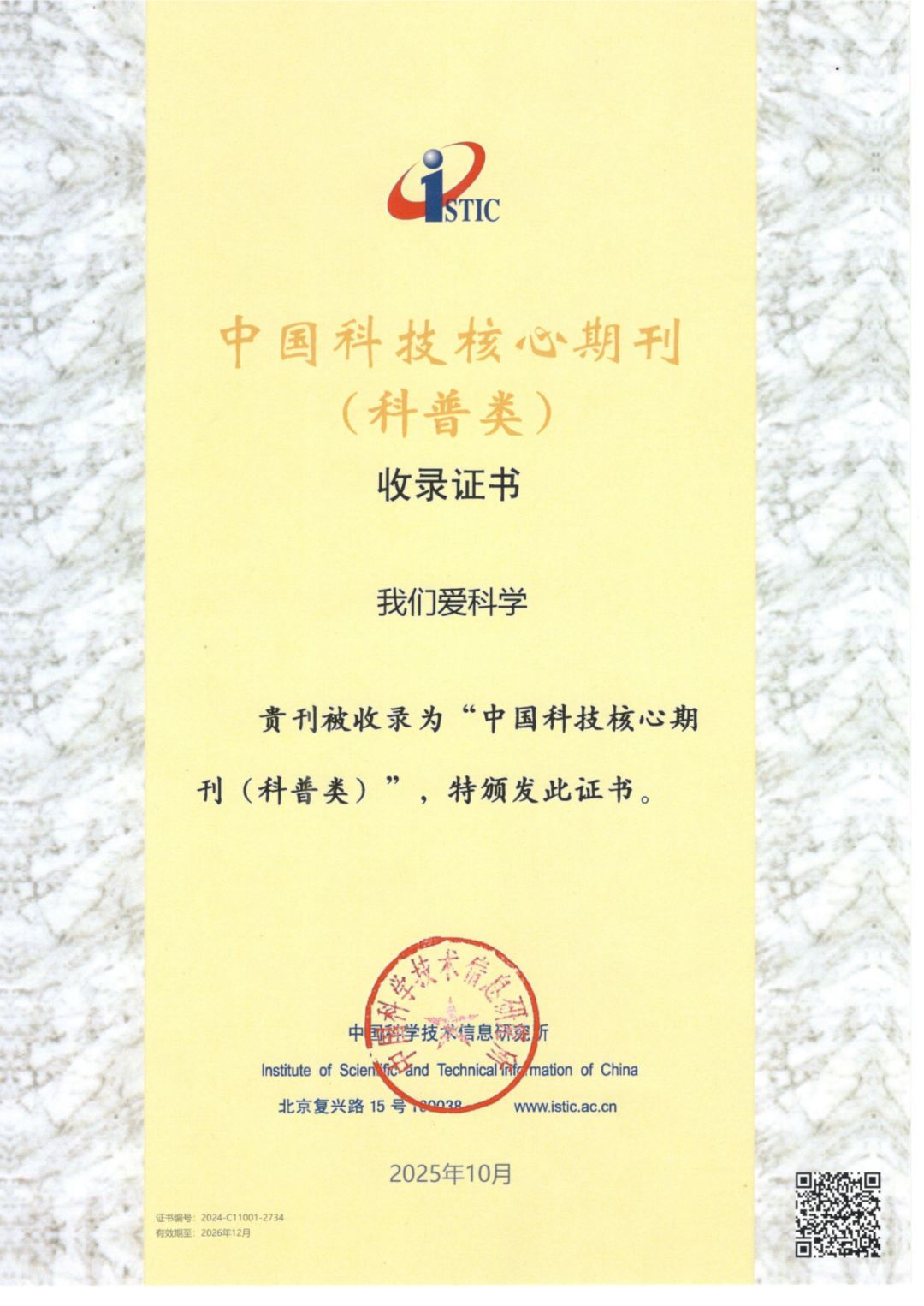 在《我们爱科学》创刊65周年之际,这一重要荣誉的获得,不仅是对我们长期坚守科学初心、传播科学精神的充分肯定,更是我们继续前行的动力。