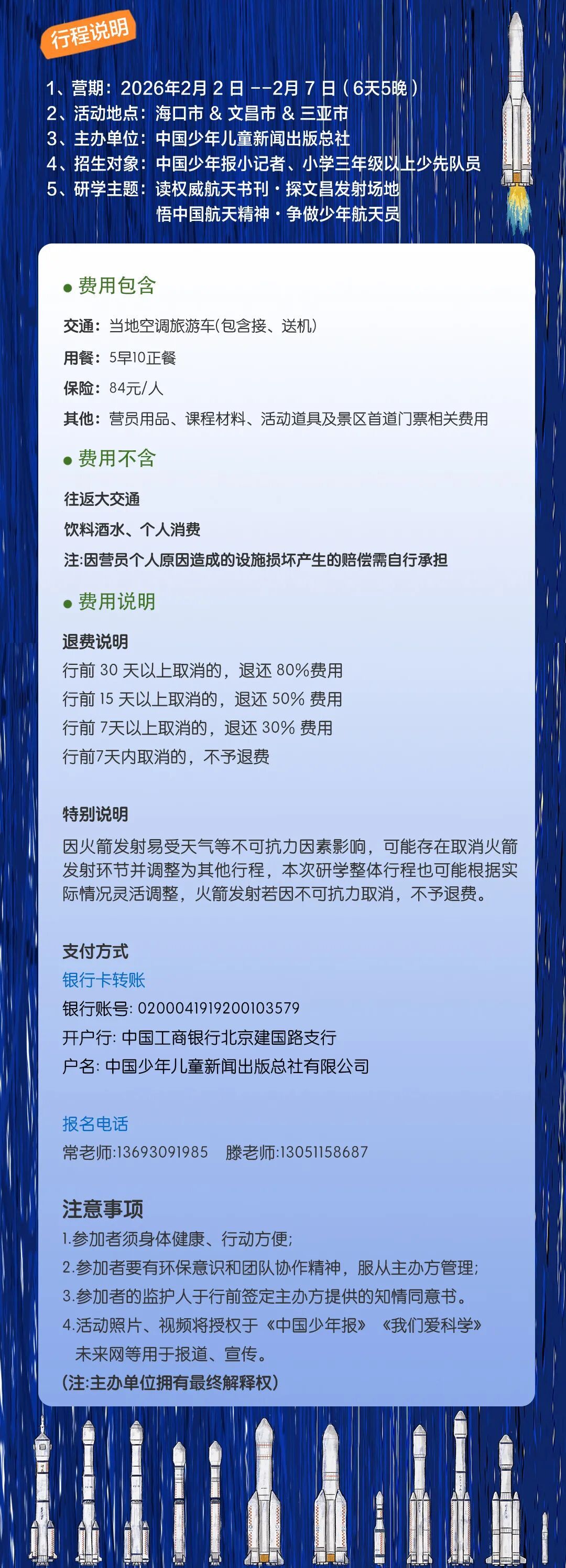 中少研学 | @热爱航天的小伙伴,2026“少年航天员”航天教育实践营开始报名啦,快来参加!