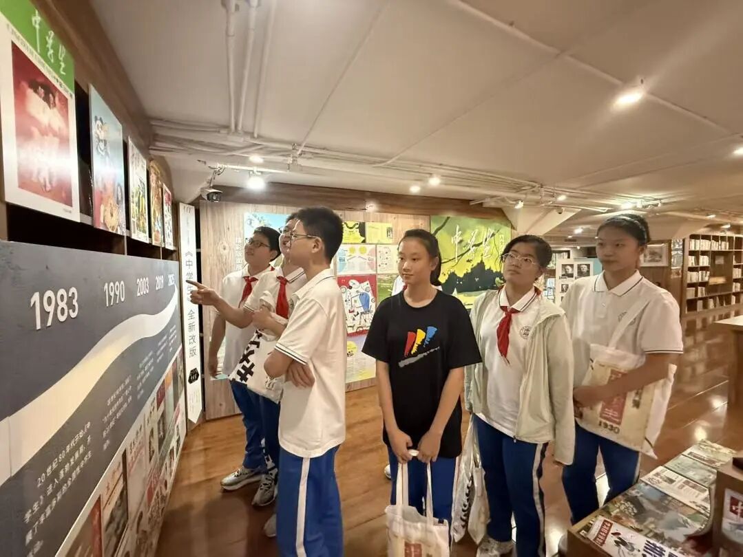 来自北京大学附属中学、北京市三帆中学、北京市陈经纶中学、北京市第八十中学、中央美术学院附属中学等学校的学生们,兴致盎然地参观了《中学生》95周年特展。