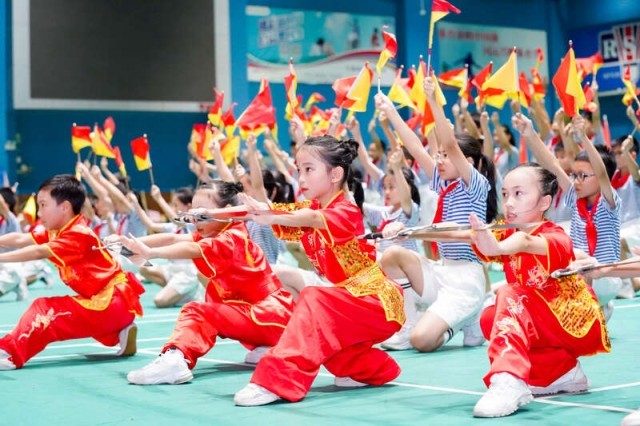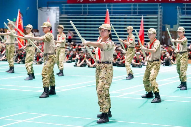 军歌独唱《东西南北兵》点燃全场热情,“东西南北中,我们来当兵”的歌词引发学员共鸣。广州市海珠区少年宫上演原创舞蹈《旭 风华正茂》,主创教师方礼军介绍,“舞蹈融合了武术与现代舞元素,希望通过肢体语言传递‘少年强则国强’的信念。”
