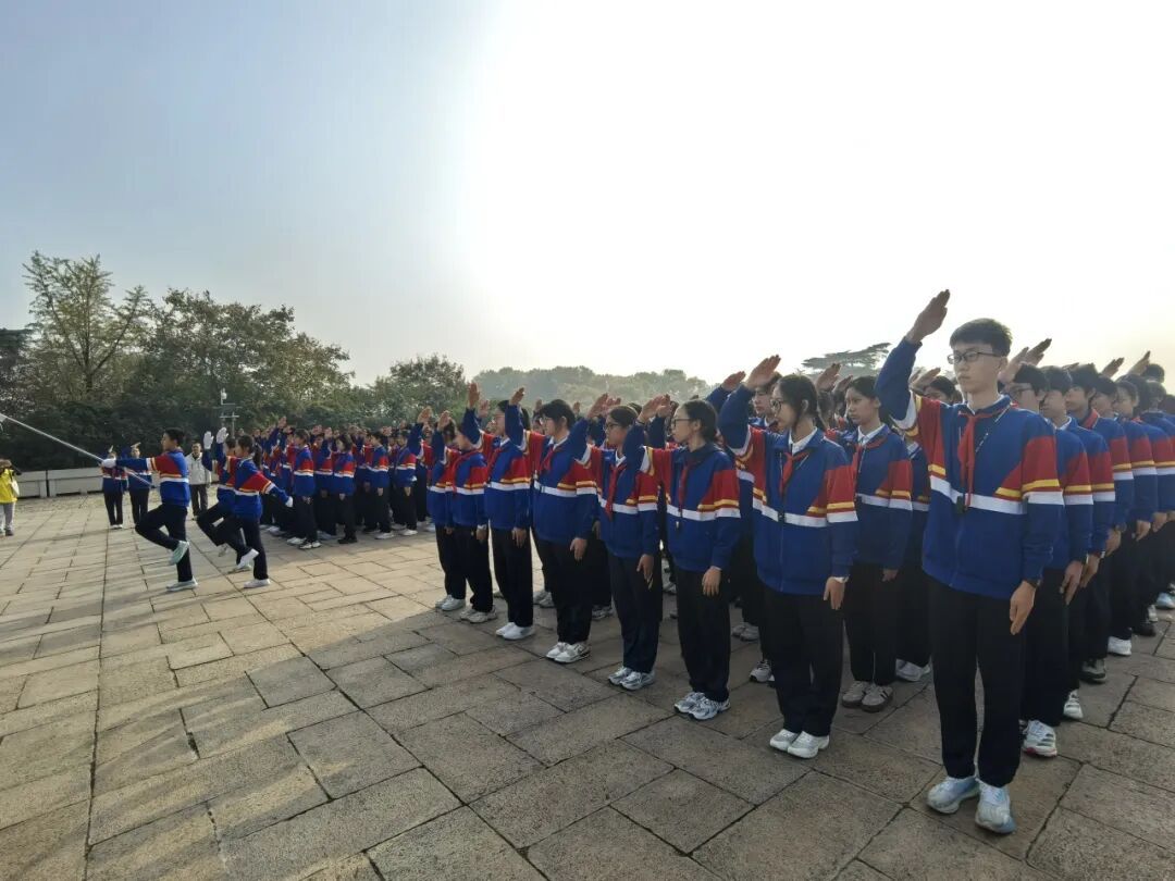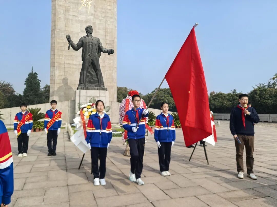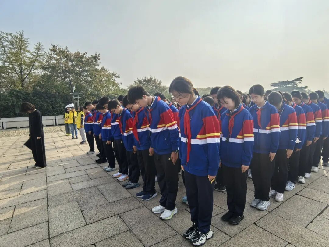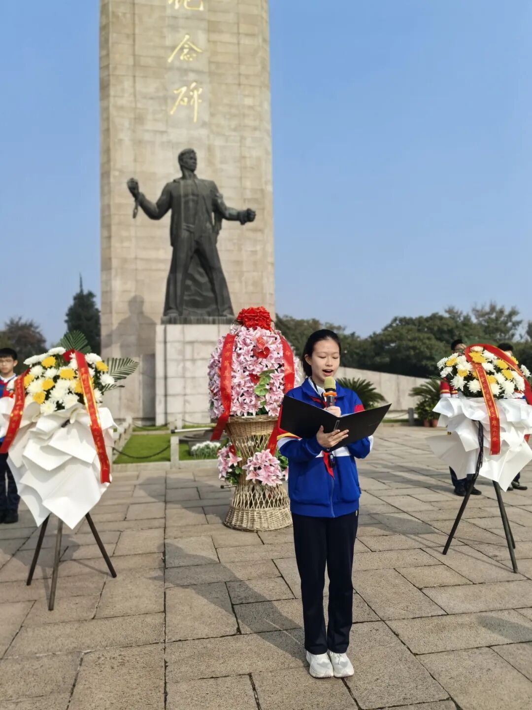 师生们首先抵达南京雨花台烈士陵园。苍松翠柏掩映之中,烈士纪念碑巍然矗立,庄严肃穆。全体师生在此隆重举行“铭记先辈历程,矢志砥砺奋进”少先队主题教育活动。