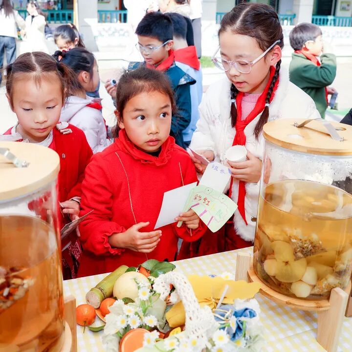 小讲解员端出温热的养生茶,讲解每一味药材的功效。队员们捧着小茶杯细细品尝,清甜的口感在舌尖蔓延,一边尝一边认真记录,在惬意中读懂“药食同源”的智慧。