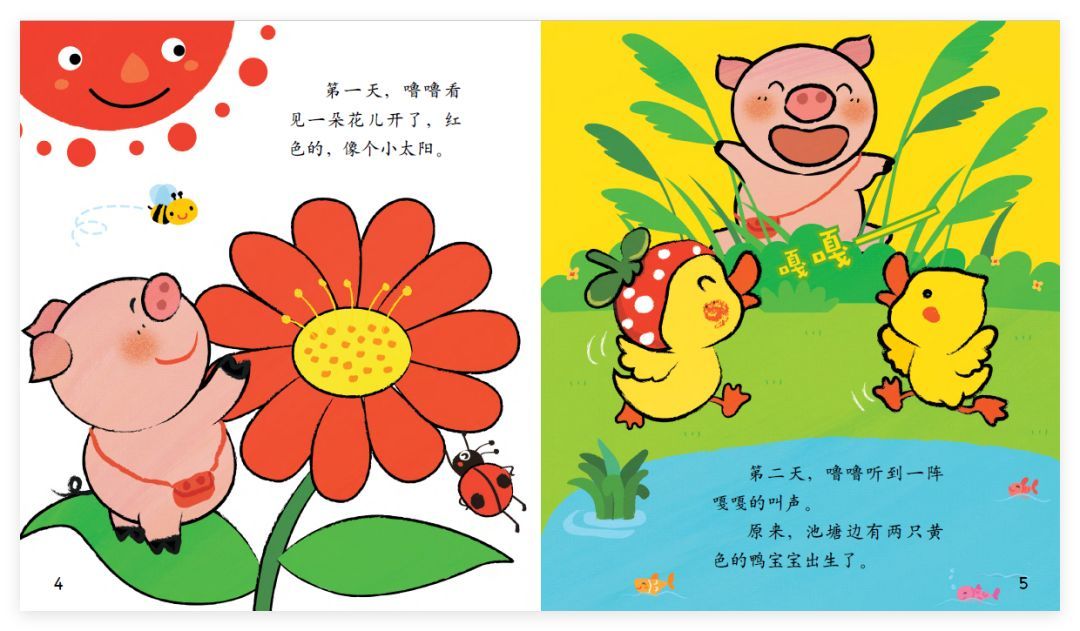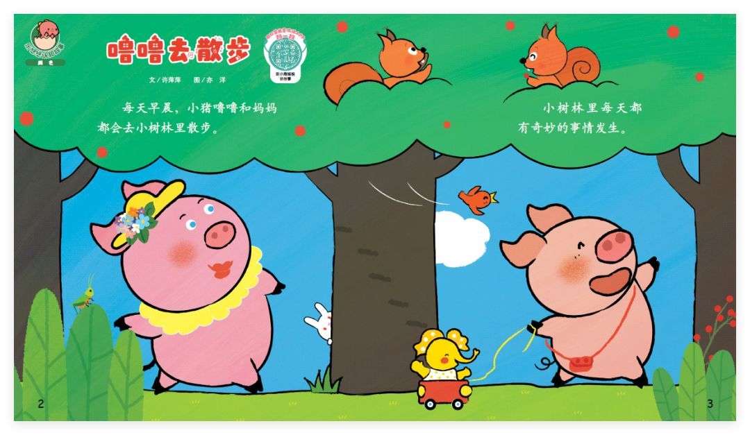 每天早晨,小猪噜噜和妈妈都会去小树林里散步。