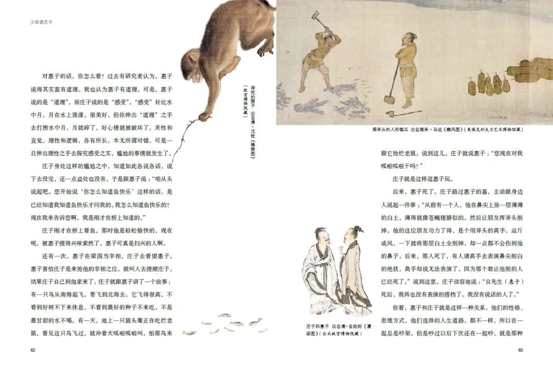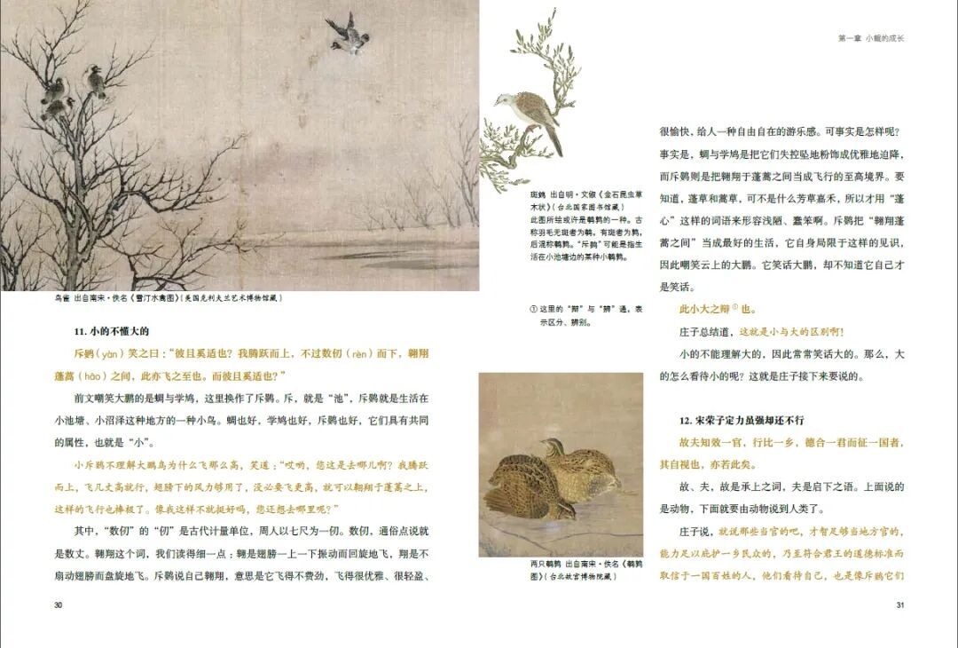 “中国好书”、冰心儿童图书奖获得者田玉彬以“超细读”方法深耕文本,将《逍遥游》《齐物论》等核心篇章的智慧举重若轻地拆解,搭配三百余幅古画与插图,让“北冥有鱼”的奇幻、“吾丧我”的通透变得直观可感。