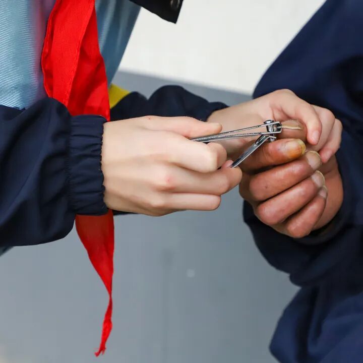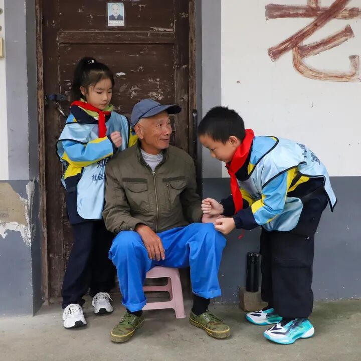 表演结束后,温暖仍在延续。在家长的耐心指导下,队员们轻轻走到老人身边,有的蹲下身帮老人剪指甲,动作小心翼翼;有的站在老人身后,温柔地为他们捶捶背、揉揉肩。老人们脸上露出了欣慰的笑容,时不时摸摸孩子们的头,轻声说着 “谢谢”,简单的互动里,满是跨越代际的温情。