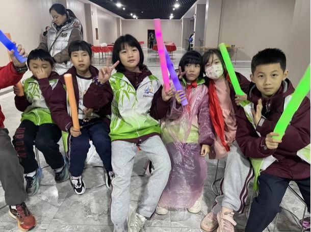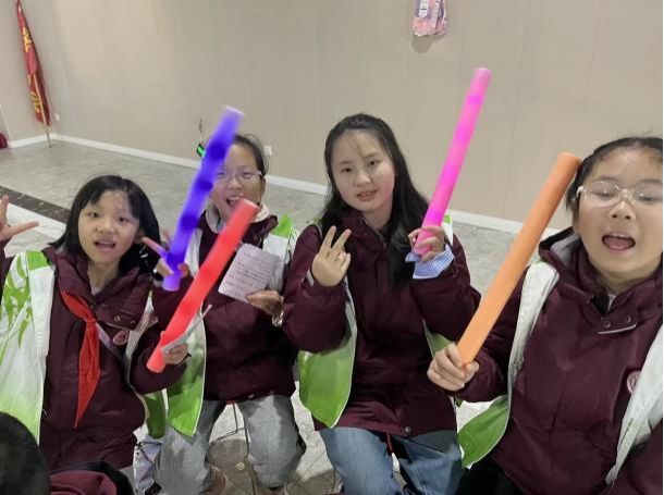 各班节目轮番登场:芭蕾舞者踮起脚尖演绎《天鹅湖》的优雅,街舞少年用机械舞步展现青春活力,艺术体操的小演员挥舞彩带划出优美弧线。欢声笑语在夜空中回荡。随后,老师们也带着孩子们欢快跳起兔子舞,现代舞、呼应着“伴音研学班”的韵律,更点燃了全场的热情。这场充满童真童趣的晚会,既展现了学子们的多才多艺,更让白天的文化浸润在欢乐氛围中升华,为研学之旅描绘出绚丽多彩的句点。
