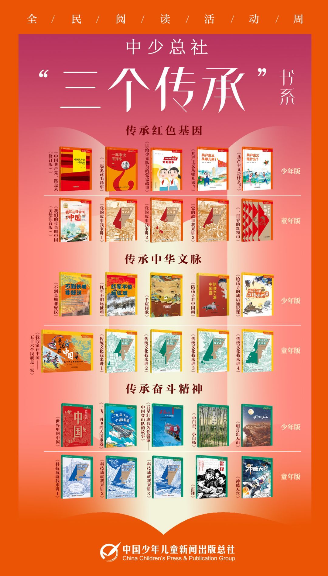 下一步,中少总社 将围绕“三个传承”书系开展系列阅读推广活动,让好书真正走进少年儿童的日常阅读生活,切实发挥书系的育人作用。以书香为媒,让精神之光代代传承。