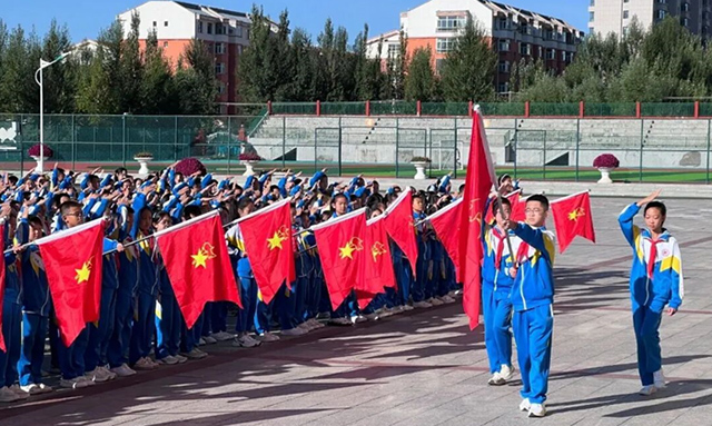 清晨的校园,队员们身姿挺拔地肃立在旗杆下,举行庄严的九一八主题升旗仪式,激发了队员们强烈的民族自豪感与爱国情感,更树立了为强国强军贡献力量的远大志向。