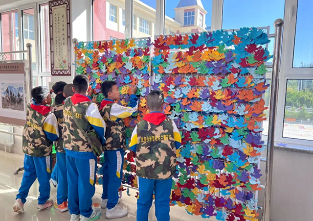 在许愿墙边,队员手持和平鸽造型的心愿卡,以沉浸式、打卡式、礼物式的方式书写对祖国的祝福和感恩,让红色信仰在笔尖流淌。心愿卡不仅是写给祖国的“情书”,更是送给自己未来的“礼物”,承载着少年的赤子之心,成为校园里一道独特的风景线,也让对祖国的祝福成为一份可珍藏、可回忆的温暖信物。