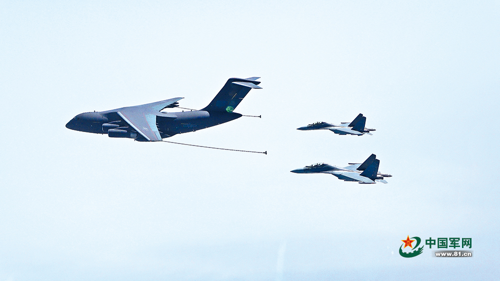 低空突防、电磁对抗、多目标拦截……加油训练结束后,战机编队接续展开高强度战术课目训练,燃油消耗较大,编队随即再次进行空中加油。