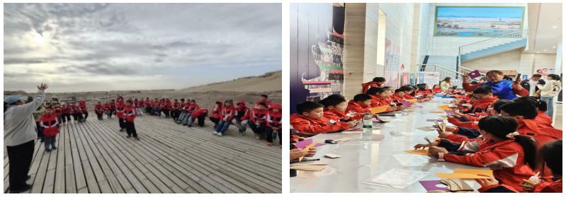 10月29日,少先队员们走进黑水城遗址,开展“红领巾爱艺术”“品读居延历史 传承北疆文化”系列实践活动,参观黑水城遗址,观赏居延历史文化数字沉浸大展,探寻额济纳深厚的历史底蕴,领会居延汉简作为中国“四大汉简”之一的文化价值,直观地感受到古遗址的昔日风貌和胡杨坚韧不拔的精神。在非遗传承人的指导下,队员们学习土尔扈特毡绣技艺,亲手制作作品,将创意融入传统工艺,在穿针引线间感受非遗魅力,传承文化根脉。