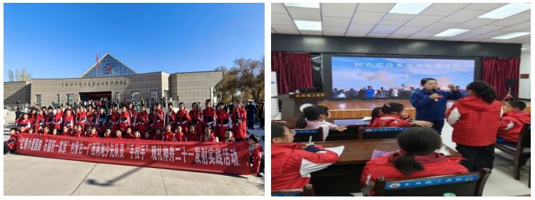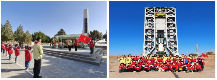 10月30日,少先队员们来到东风革命烈士陵园敬献鲜花,聆听航天英烈“牺牲在戈壁,埋在青山头”的感人故事;在东风航天科普课堂,少先队员们参观了东方红一号卫星发射场、东风航天城历史博物馆、东风礼堂、酒泉卫星发射中心历史博物馆。一位深耕火箭研发数十年的科研工作者,用生动的讲述,为大家揭开航天事业的两大“密码”— 火箭推进原理与中国航天发展历程,让硬核科技变得可感可知,让少先队员们更加了解中国航天事业发展的光辉历史,切身感受“特别能吃苦、特别能战斗、特别能攻关、特别能奉献”的载人航天精神,让课本上的“星辰大海”变得触手可及。