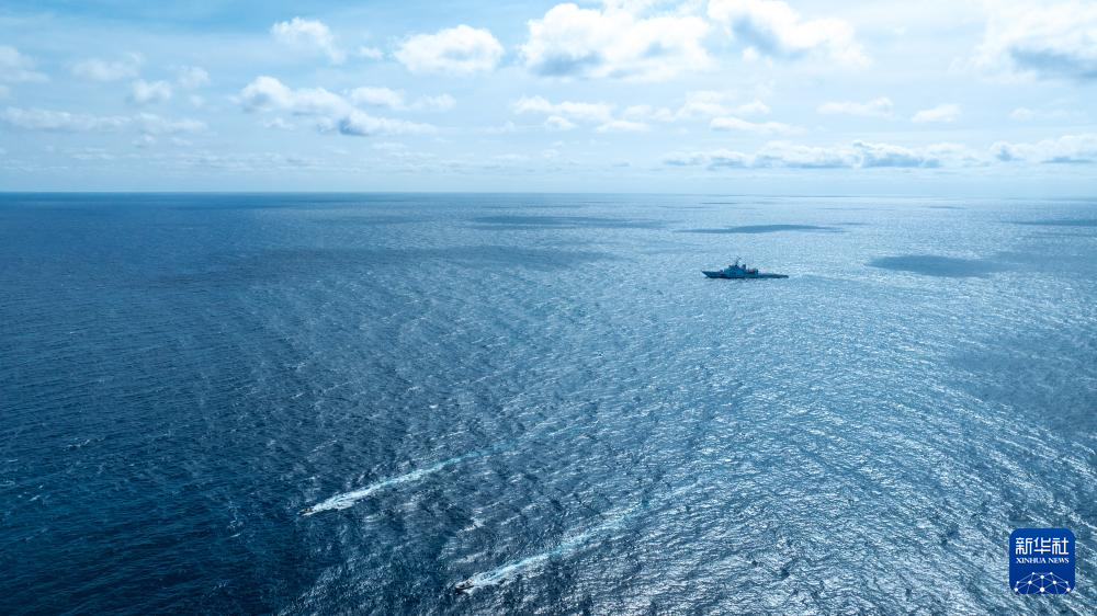 11月14日,中国海警黄岩舰在黄岩岛领海开展常态化巡航(无人机照片)。